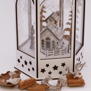 Este farolillo está hecho en madera DM de 3mm. Es ideal tanto para decorar nuestro hogar como nuestros escaparates. Su iluminación interior lo hace único. Puede ser en DM blanco, DM negro o DM natural. El tamaño grande mide 29 centímetros y el pequeño PENDIENTE DE MEDIR.